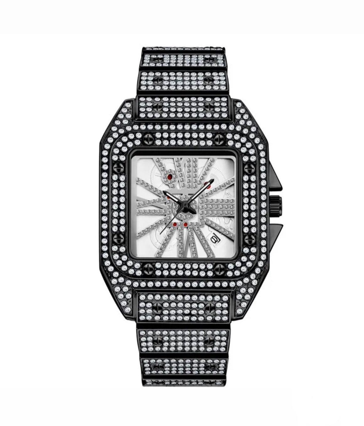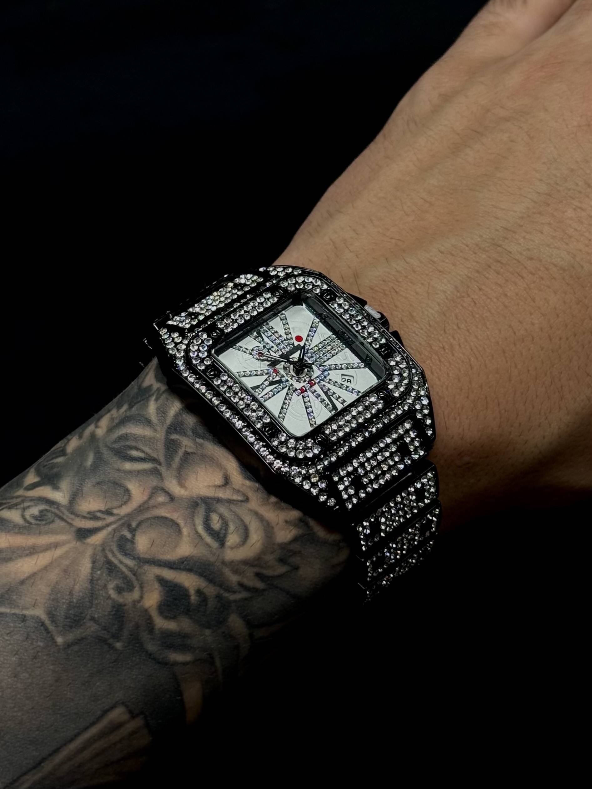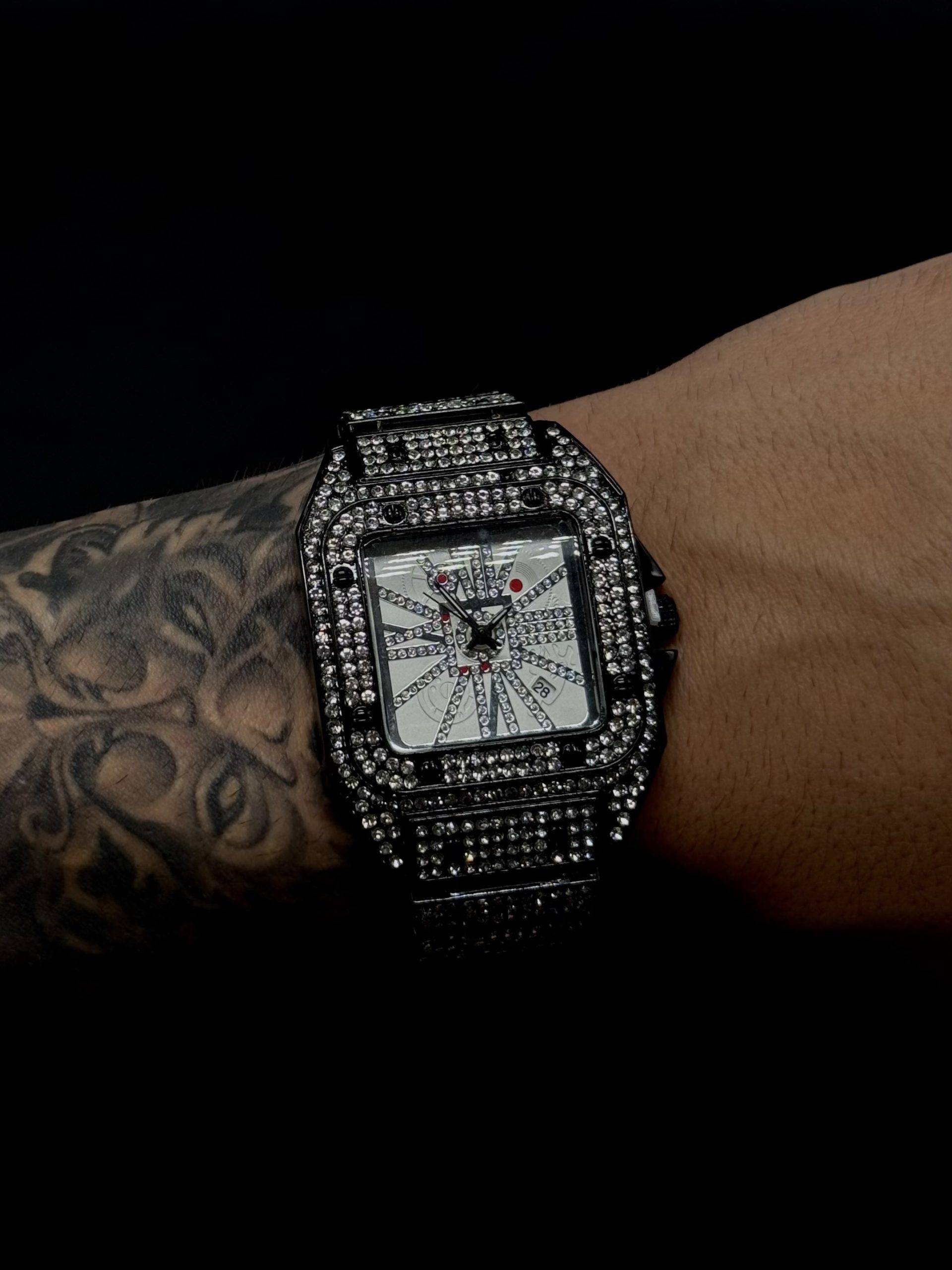 Reloj Modelo Kiev Black Enchapado en Titano con Zirocnias!! Modelo Excluisvo de CobraJoyeria. Con malla ajustada sacando los pernos!!